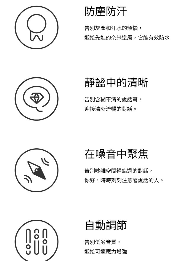 由於每個人的聽力需求不同,Sirion Connect 提供了一系列型號來適應不同程度的聽力損失,從輕度到重度聽力損失防水防塵等級為IP68,增強了可靠性。