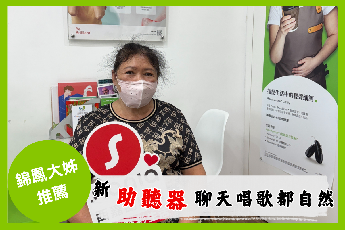 戴上新助聽器後,跟家人朋友聊天能即時聽到內容、自然回應,再也不會跟不上話題。唱歌時也能清楚聽到旋律,不會搶拍或走音。